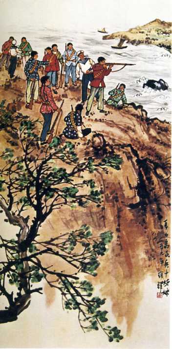 中国画《长山岛民兵十姊妹》张铎 1959年