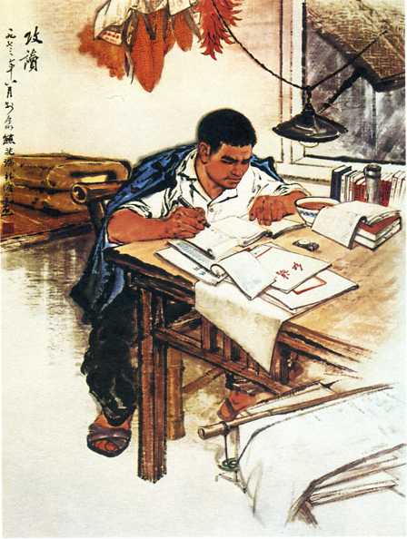 中国画《攻读》熊兆瑞、林墉 1973年