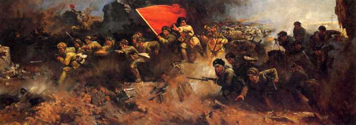 油画《攻克锦州》(160x452cm)任梦璋、张洪赞、李树基、广廷渤 1969年