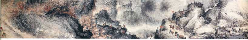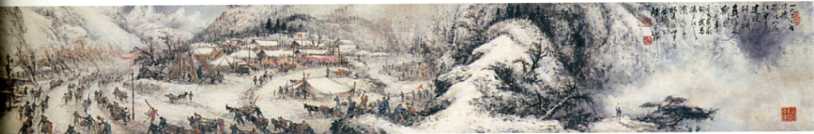 中国画《山村跃进图》(局部之一)(31x1529cm)关山月 1957年