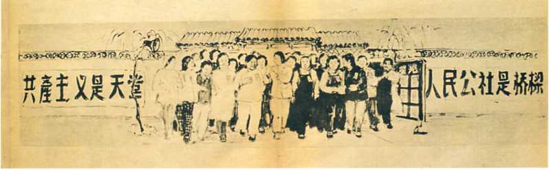 速写《“我们不再是家务劳动者,我们是建设社会主义的生力军!”社员代表走出会场》靳之林