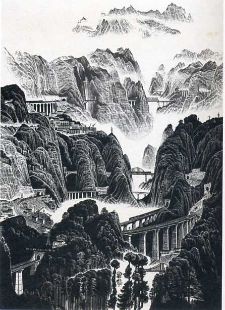 版画《万水千山只等闲》(72x54.3cm)丰中铁 1963年
