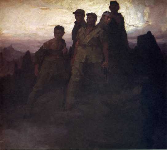 油画《狼牙山五壮士》(185x200cm)詹建俊 1959年