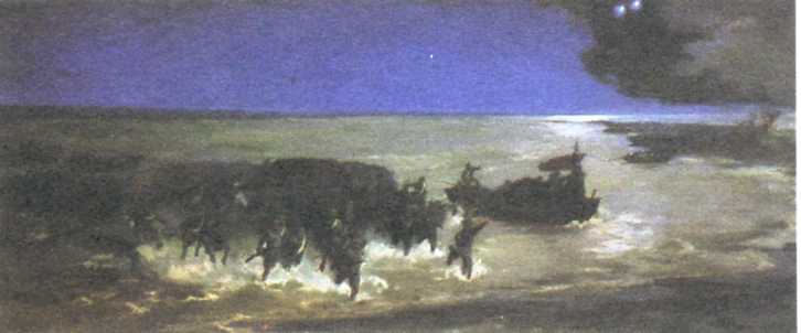 油画《夜渡黄河》(13x19cm)艾中信 1961年