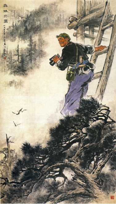 中国画《森林之鹰》(196x940cm)曾小浒、王光彬 1973年