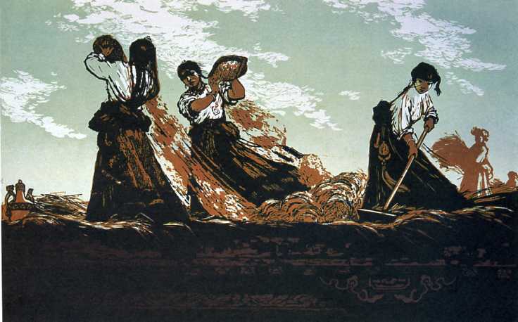 版画《扬青稞》(36x55cm)李焕民 1957年