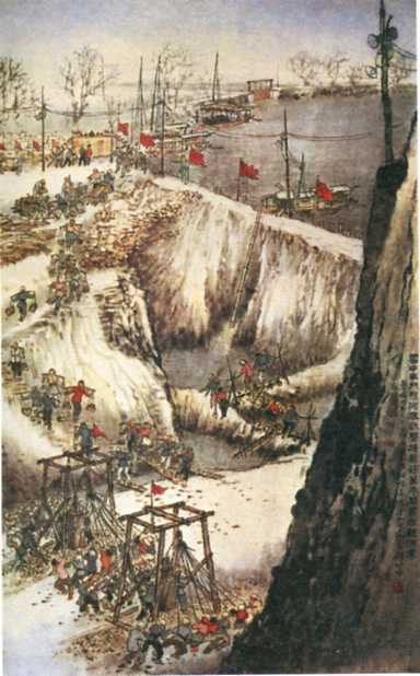 中国画《筑坝》(84x53cm)钱松喦 1958年