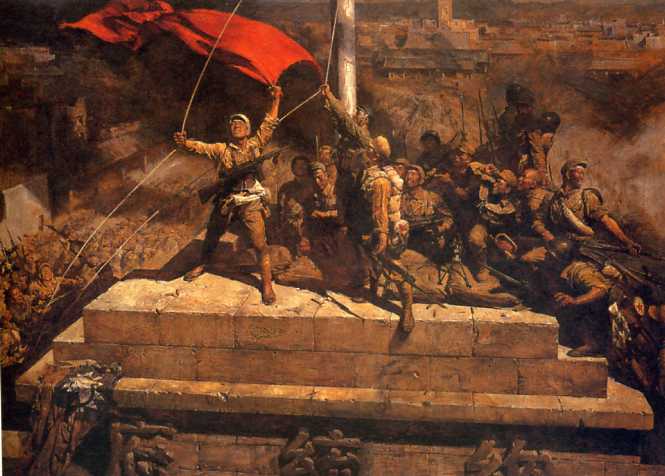 油画《攻占总统府》(335x460cm)陈逸飞、魏景山 1977年