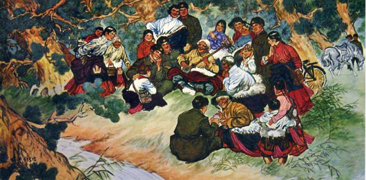 中国画《好歌唱给知心人》(66.7x132.2cm)钟为 1964年