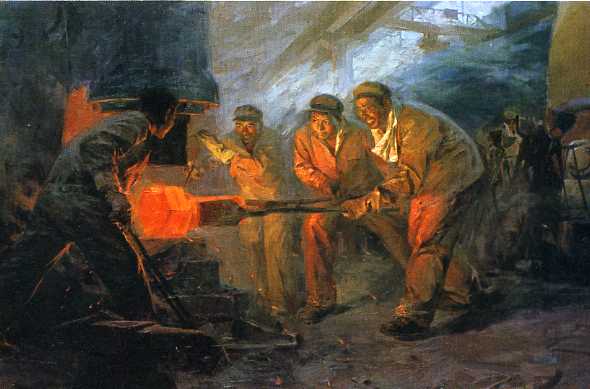 油画《展新图》(上海机床附件一厂)苏明 (上海胜德塑料厂)胡依仁
