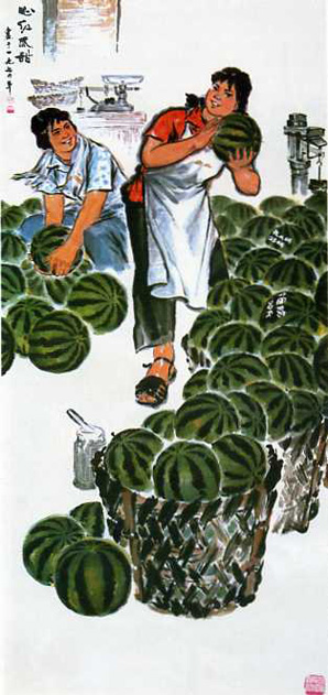 中国画《心红瓜甜》上海市卢湾区烟糖果品公司 杨秋宝 刘同邦