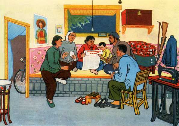 年画《全家学公报》 陕西户县 玉蝉公社北斑竹园大队社员 杜志廉