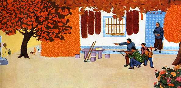年画《空时练上三五枪》秦渡公社秦四大队社员 张春霞(女)