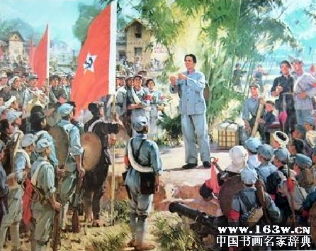 油画《步调一致才能得胜利》(1928年毛主席在桂东沙田颁布《三大纪律 八项注意》)(局部)高虹 彭彬 何孔德