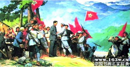油画《井冈山会师》林岗(1975年)