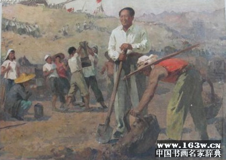 油画《毛主席和我们一起劳动》王式廓