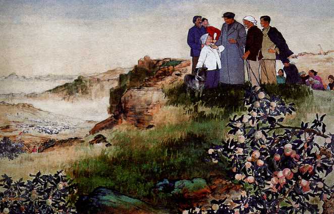 中国画《毛主席在山村》(50cmx79cm)金志远
