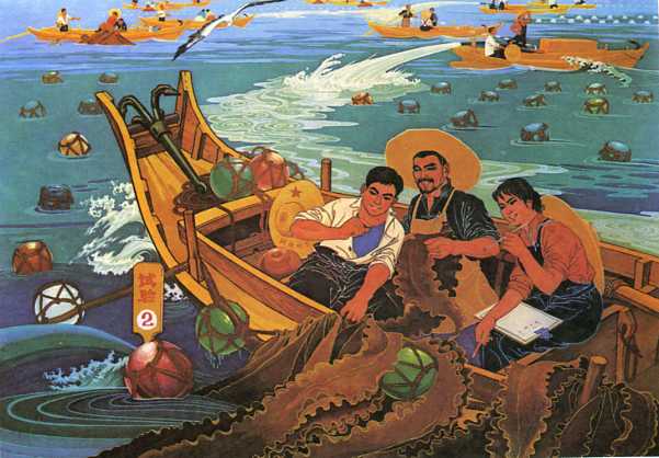 年画《实验田》宋仁梁(渔民)、宋仁贤(渔民)
