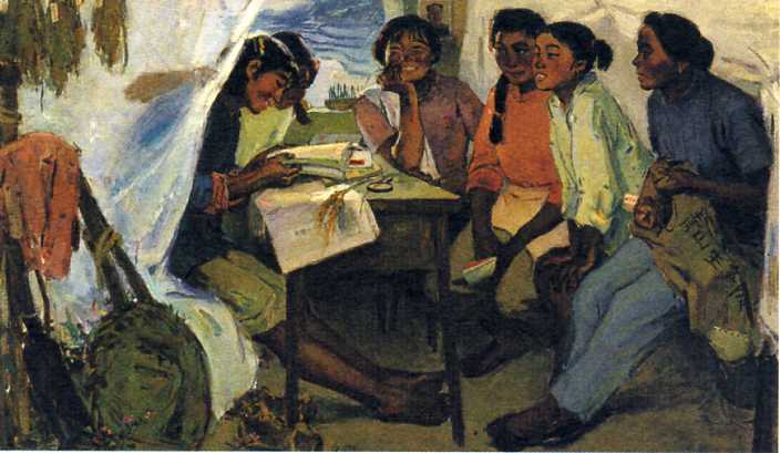 油画《她们在成长》(100x160cm)宋贤珍 1964年