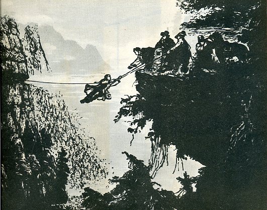 木刻《高原峡谷》1957年 李焕民
