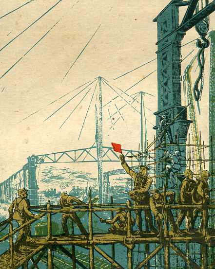 套色木刻《建设》沃渣 1955年