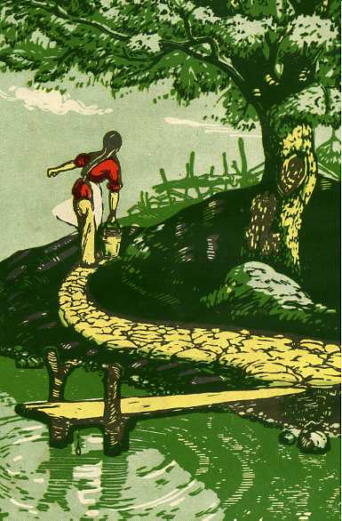 套色木刻《河畔》吴燃 1957年