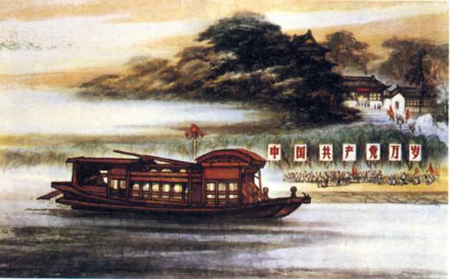 中国画《南湖革命纪念船》谢之光 1972年