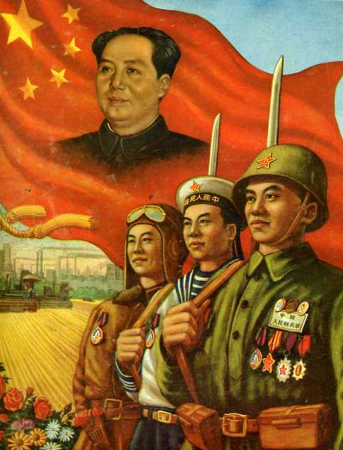 宣传画《响应毛主席号召:建设强大的国防军和强大的经济力量!》1951年