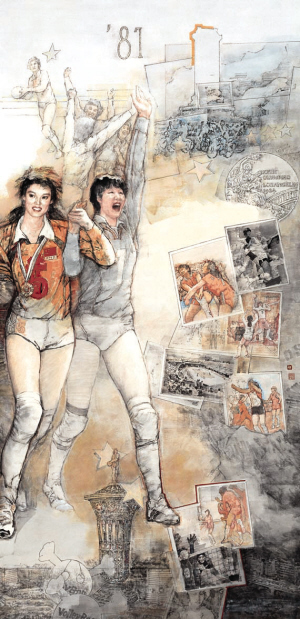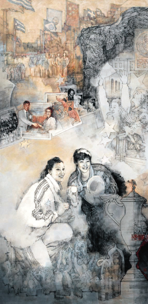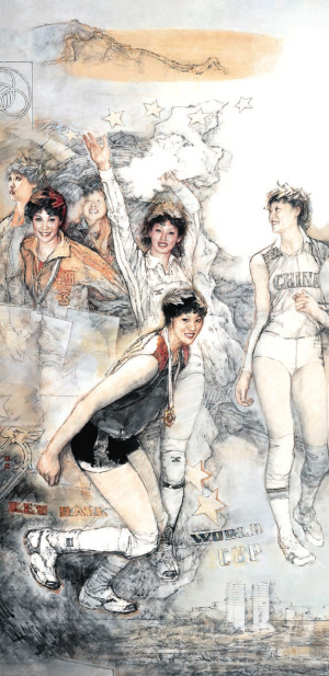 铿锵玫瑰——中国女排首获世界冠军(国画) 华其敏