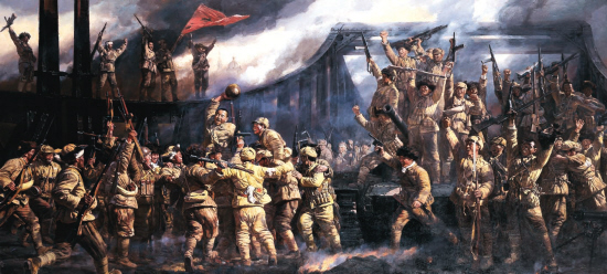 平津战役·会师金汤桥(油画) 孙立新 白展望 窦 红 220cm×450cm