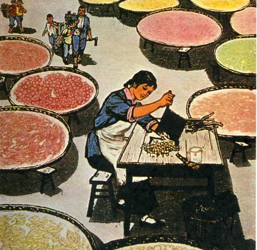 版画《大队药厂》(65x64cm)江晋林 1975年