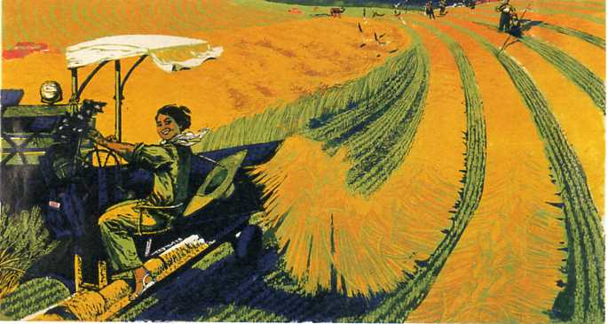 版画《大地织锦》(47x85cm)蒋悦 1976年