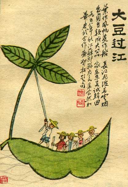 农民画家和专业画家合作的漫画《大豆过江》和华君武合作