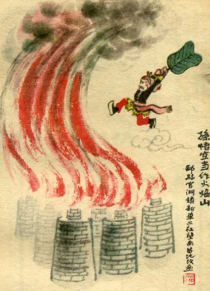 农民画家和专业画家合作的漫画《孙悟空当作火焰山》和苗地合作