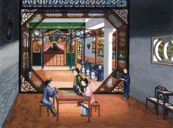 水粉《弈棋的仕女》(44.5x59厘米)19世纪中期