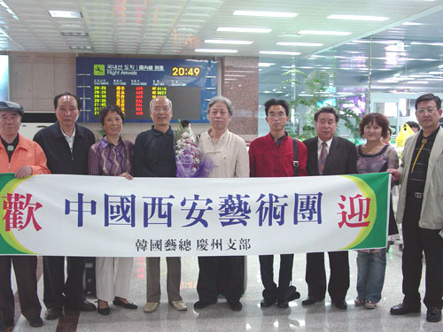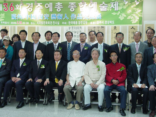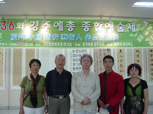 2009年5月23日,陕西长安书画艺术研究院应韩国艺总庆州支部之邀请,受西安市政府委托,继2007、2008年双方艺术交流之后,再次组团赴韩国参加文化交流活动,并在5月26日举行了“中韩书画作品联展”。代表团以我院名誉院长,著名书法家叶炳喜先生为团长,院士杨永进,研究员史俊峰及叶炳喜夫人刘淑芳,史俊峰夫人王丽等五人赴韩参加了展览活动。