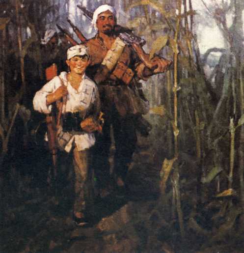 油画《在战斗中成长》(160x160cm)秦大虎、张定钊 1964年