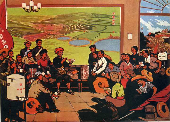 版画《把大寨精神带回去》叶欣、张四春、杨彪 1975年