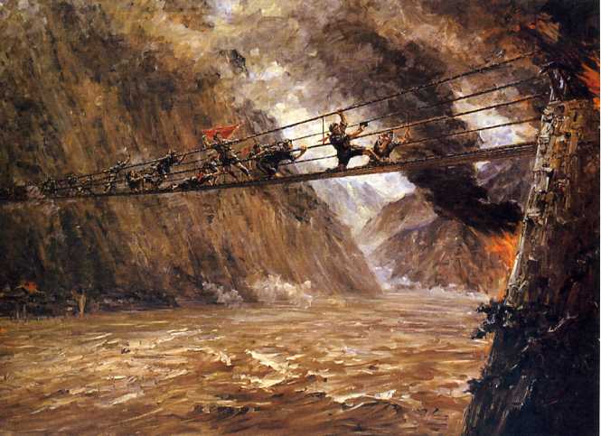 油画《飞夺泸定桥》(133x180cm)刘国枢 1957年