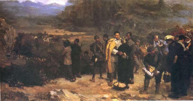 油画《告别》(150x280cm)尹戎生 1957年
