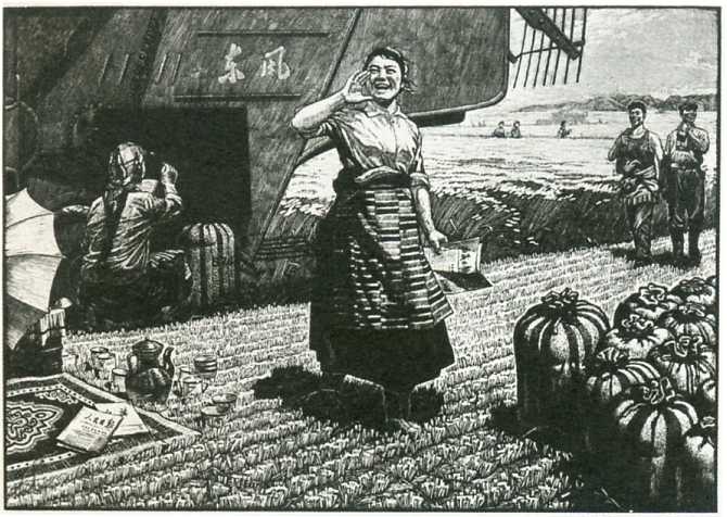 版画《高原形势无限好》(63x90cm)仁真郎加 1976年