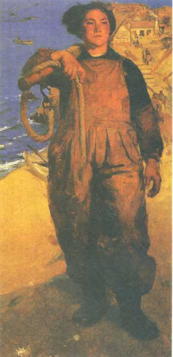 油画《海岛姑娘》(175x87cm)王霞 1961年 中国美术馆藏