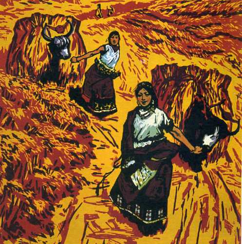 版画《初踏黄金路》(54.3x49)李焕民 1963年