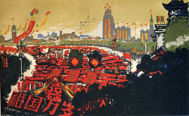 版画《节日》(53x85.5cm)陆一飞、鲍培忠、郑通校 1961年