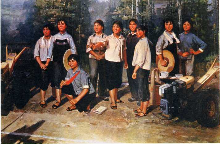 油画《三八机训班》熊兆瑞 1975年