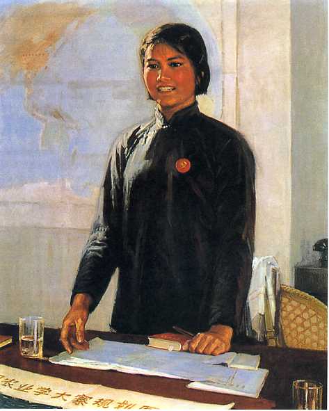 油画《女委员》汤小铭 1973年