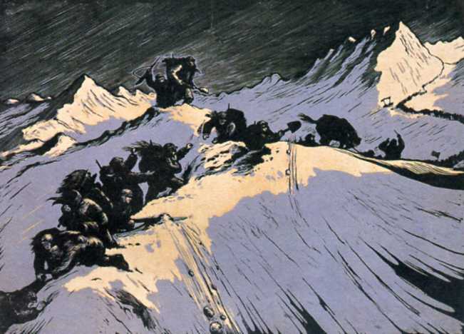版画《劈雪前进》(26x33cm)关夫生 1952年