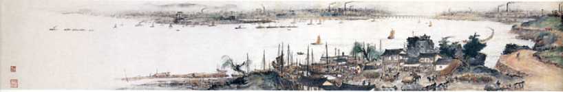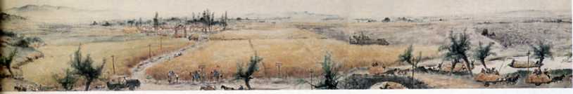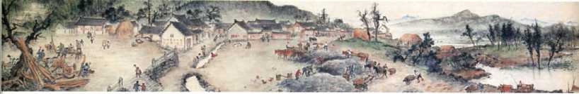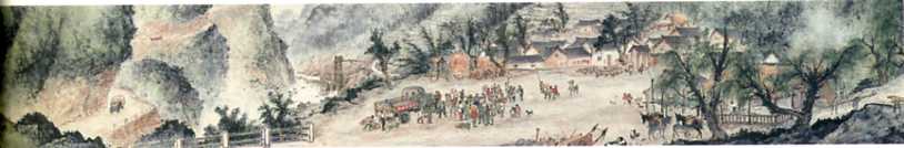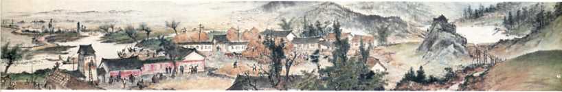 中国画《山村跃进图》(局部之一)(31x1529cm)关山月 1957年