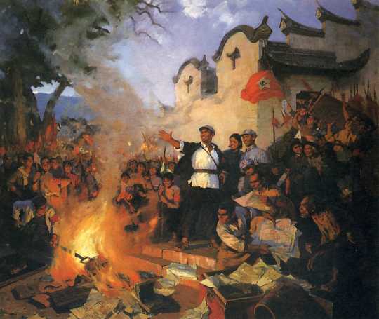 油画《烧地契》尹戎生 1975年