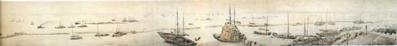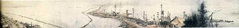 中国画《武汉防汛图卷》(局部之一)黎雄才 1956年